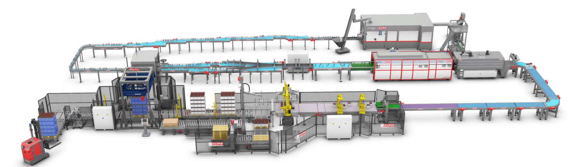 The collaboration between Robopac and Conserve Italia is historical, with actions mainly targeted at the French plants and Pomposa plant - one of the largest food factories in Italy - and aimed at the replacement of individual machines. In 2017 Robopac carried out a more complex project, which was the integration of a TC500 CW for glass bottles containing tomato puree to the already existing line.