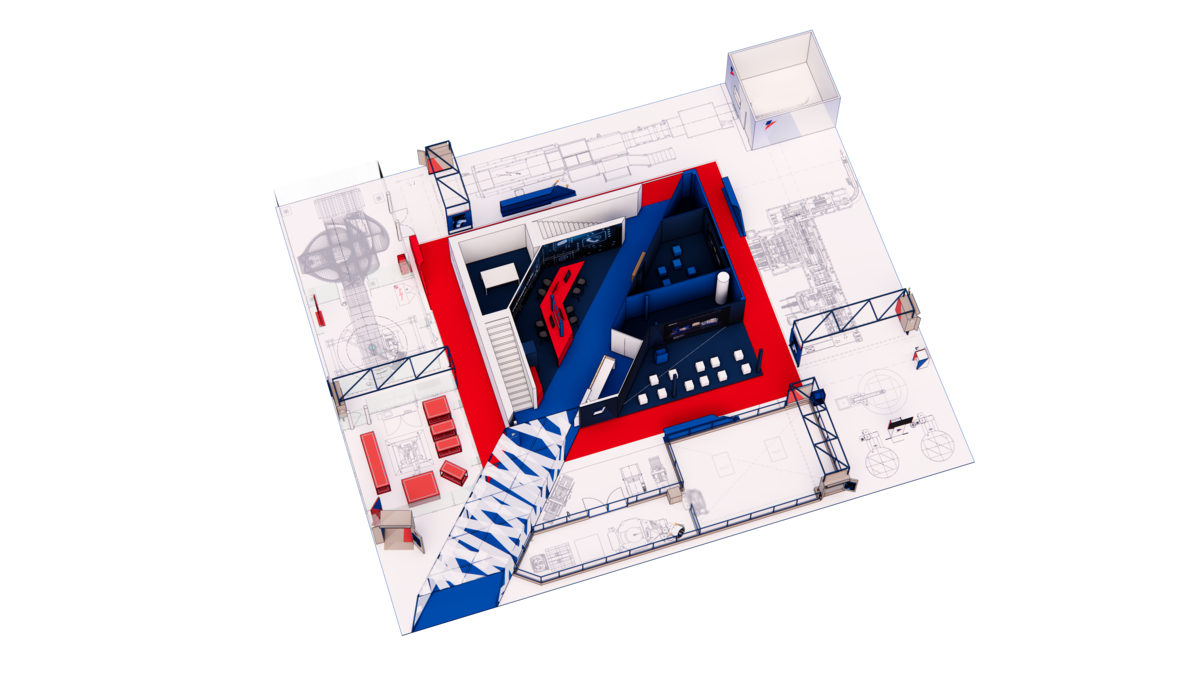 EL STAND SE DESARROLLA EN TRES ENTORNOS DISTINTOS, CADA UNO DISEÑADO PARA INVOLUCRAR A LOS VISITANTES A UN NIVEL PROGRESIVAMENTE MÁS PROFUNDO.
