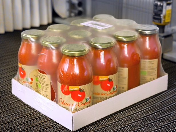 Con una producción que va desde las salsas preparadas hasta los productos industriales procesados, Terre di Sangiorgio ofrece productos de alta calidad gracias al uso de tecnologías de vanguardia que garantizan un alto nivel y la máxima seguridad. Con la introducción de la Dimac Nova, la última incorporación a la familia de retractiladoras y encajadoras de Robopac Packers, la empresa puede ahora realizar todas las soluciones clásicas de embalaje secundario (bandeja y film, sólo bandeja, sólo film, almohadilla de capas y film), a velocidades de hasta 35 ciclos por minuto. El final de la línea se completa con una solución tanto para la paletización como para la estabilización de la carga: Palwrapp, un paletizador compacto y modular, combinado con la envolvedora Robopac equipada con la Cube Technology.